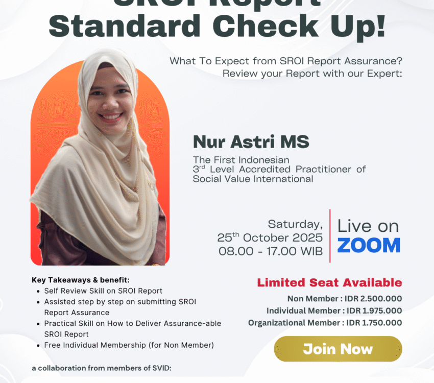 📢 Pendaftaran Social Value Associate kini dibuka! Apakah Anda tertarik menjadi praktisi Social Value dan SROI, tapi bingung harus mulai dari mana? Di tengah dunia yang sibuk menghitung angka, kini saatnya kita menghitung apa yang benar-benar penting: nilai sosial dan dampak. Social Value Indonesia (SVId) mengundang Anda untuk memulai jenjang […]